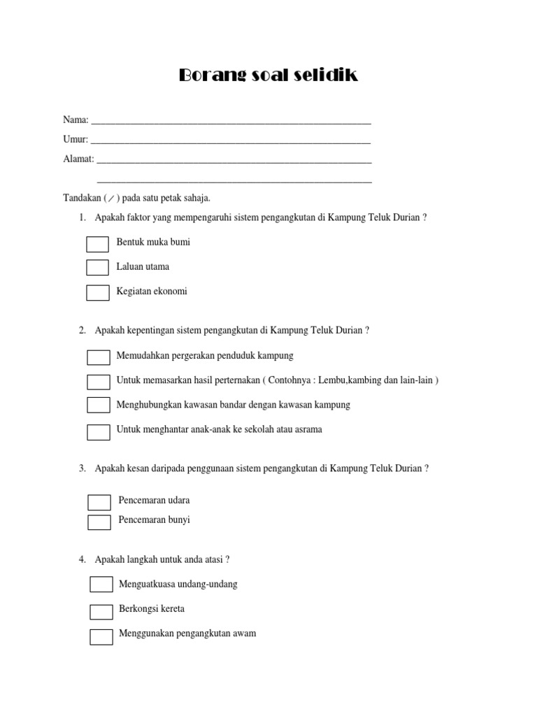 Related : Contoh Borang Soal Selidik Pengangkutan Awam / Contoh borang soal selidik kerja kursus bahasa melayu (stpm)full description..