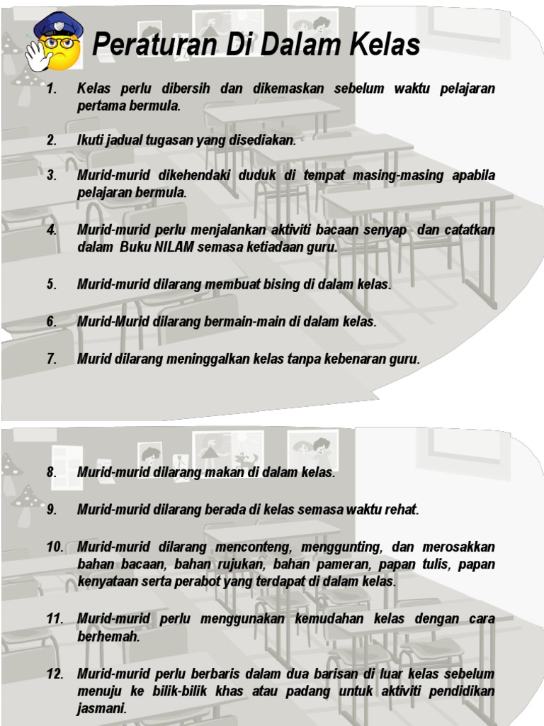 PERATURAN DALAM KELAS VERSI BAHASA.pdf - Google Drive from lh6.googleusercontent.com Murid yang sekolah di sekolahan dan mahasiswa yang belajar di kampus tempatnya kuliah akan menemui dengan yang namanya belajar di kelas di depan guru, dosen maupun asisten kelas. Listen carefully = dengarkan 9. Peraturan di dalam kelas 1.jangan buat bising di dalam kelas. Video by ustazah moonvideo ini merupakan video berkaiatan dengan peraturan di dalam kelas.sesuai untuk murid sekolah rendah dan prasekolah. Di dalam penelitian tindakan kelas, ada kegiatan pengamatan terhadap diri sendiri, yaitu pada saat peneliti menerapkan pendekatan, model, atau metode pembelajaran sebagai upaya menyelesaikan. Sosialisasi ktsp peraturan menteri pendidikan nasional nomor 23 tahun 2006 nomor 23. Peraturan dalam pacaran mengikat kedua belah pihak. Di dalam kelas di halaman rumput.