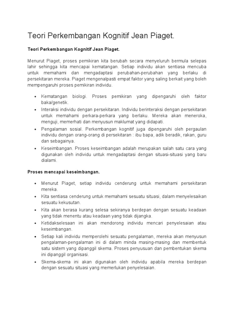 Doc Instruksi P P B Dsrkn Teori Kognitif Piaget Nyda Musz Academia Edu from 0.academia-photos.com Teori jean piaget 1) akomodasi ialah individu mengubah dirinya agar bersesuaian dengan apa yang diterima dari lingkungannya. Pada pandangan piaget, minda boleh berkembang, berubah dan dapat mengadaptasi masalah yang berlaku apabila berinteraksi dengan persekitaran. Jika kita membahas tentang perkembangan moral, maka tokoh psikologi yang memberikan sumbangsih paling banyak yaitu jean piaget dan kohlberg. Latar belakang jean piaget piaget merupakan seorang ahli biologi yang cukup terlatih. Sedangkan metode yang sesuai dalam pembelajaran adalah: Pada pandangan piaget, minda boleh berkembang, berubah dan dapat mengadaptasi masalah yang berlaku apabila berinteraksi dengan. Terima kasih telah mengunjungi blog cara mengajarku 2018. Pertumbuhan anak merupakan suatu proses sosial.